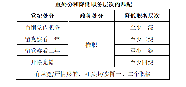 2.¶ÔÄâ¸øÓèÃâÖ°´¦·ÖµÄµ³Ô±¸É²¿£¬£¬£¬£¬ £¬Ó¦Æ¾Ö¤Äâ¸øÓèÆäµ³¼ÍÖØ´¦·ÖµÄ²î±ð²ã´Î£¬£¬£¬£¬ £¬¼´×÷·Ïµ³ÄÚÖ°Îñ¡¢Áôµ³¹Û²ìÒ»Äê¡¢Áôµ³¹Û²ì¶þÄêºÍ¿ª³ýµ³¼®µÈËĵµ£¬£¬£¬£¬ £¬ÓÉÇá¼°ÖØ£¬£¬£¬£¬ £¬Çø±ð¿´´ý£¬£¬£¬£¬ £¬»®·ÖÌá³ö½µµÍÖÁÉÙÒ»¸öÖÁËĸöÖ°ÎñÌõÀíµÄ½¨Òé¡£¡£¡£¡£ ¡£¡£¡£ ¡£½µµÍÖ°¼¶µÄ·ù¶ÈÓ¦µ±×ÛºÏ˼Á¿Ö°ÎñÌõÀíºÍÖ°¼¶Ö®¼äµÄ¶ÔÓ¦¹ØÏµ£¬£¬£¬£¬ £¬µ÷½âºóµÄÖ°¼¶Ò»Ñùƽ³£Ó¦µ±Îªµ÷½âºóÏìÓ¦Ö°ÎñÌõÀíËù¶ÔÓ¦µÄ×îµÍÖ°¼¶¡£¡£¡£¡£ ¡£¡£¡£ ¡£¶ÔÊÊÓôӿí»òÕß´ÓÑÏÕÆÎÕÇéÐε쬣¬£¬£¬ £¬¿ÉÒÔÉÙ½µ»òÕ߶ཱུһÖÁ¶þ¸öÖ°¼¶¡£¡£¡£¡£ ¡£¡£¡£ ¡£